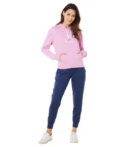 - Pullover design with drawstring hood featuring metal eyelets and tips.