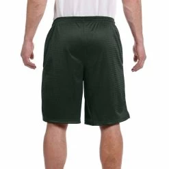 Embroidered apparel provides you with an excellent way to attach a custom logo. Simply place your corporate logo on the Champion Men’s Athletic Dark Green 3.7-Ounce Mesh Short with Pockets to promote your brand in the community. One-hundred percent polyester mesh produces a rugged pair of shorts. Highly breathable fabric keeps you cool whenever you wear layers on cooler days. Side seam pockets provide plenty of room to store a couple of tennis balls or small to mid size electronic devices. The full athletic fit includes an elastic waistband and inside drawcord that conform to most body shapes and sizes.