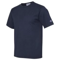 A great tee is a must have and the custom screen print Champion Men’s Navy Garment Dyed Short Sleeve T-Shirt is no exception. Made in true Champion quality of 100% cotton, these t-shirts are available in an array of colors and sizes. The set on ribbed crew neck is in traditional t-shirt styling, but your custom logo can make the shirt unique for nearly any use. Perfect for athleisure apparel when you are ready to hit the gym or as a comfortable choice for spending time outdoors. Add a company logo to use these as employee apparel that will stand up to hard work with double needle stitching throughout. A great, cost-effective employee gift that can be customized for your needs.