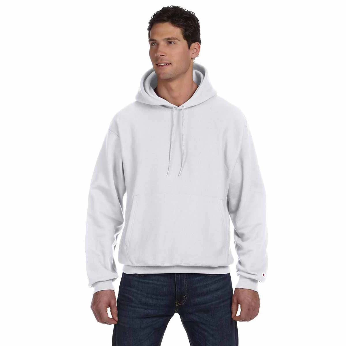 With a cotton and polyester blend, the Champion Men’s Silver Grey Reverse Weave 12-Ounce Pullover Hood gives you the benefit of wearing two fabrics within one stylish outer garment. Polyester increases the strength of the sweatshirt and the cotton. The two-ply hood keeps your head warm on colder days, as well as protects you against blustery winds. Ribbed knit cuffs stretch to give you more arm flexibility. Take advantage of the large decoration area aside from the Champion “C” logo to attach your company logo. Embroidered apparel gets your brand noticed everywhere you go.