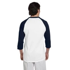 Want a T-shirt that will never go out of style? The classic design of the Champion Men’s White/Navy Baseball T-Shirt is comfortable and durable enough to wear all the time–and casual enough that you just might get away with doing exactly that. The Champion Men’s White/Navy Baseball T-Shirt is extremely lightweight and breathable. Made with 100% cotton, it has 3/4 length sleeves, double-needle stitching on the sleeves and bottom hem, and a logo on the left sleeve.
