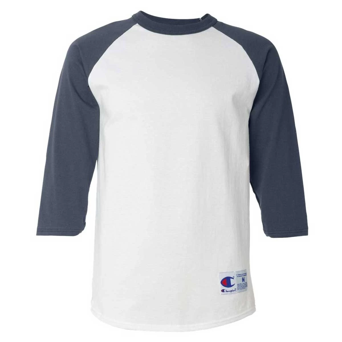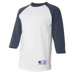 The baseball diamond will shine when you enter in a custom screen print Champion Men’s White/Navy Three-Quarter Raglan Sleeve Baseball T-Shirt. Made of 100% breathable cotton, this raglan tee offers double-needle sleeve and bottom hems for durability. The Champion C appears on the left sleeve and a locker patch on the front hip also demonstrates quality. Add a company logo to use as part of employee apparel or a custom logo to create custom gifts that will be enjoyed as often as possible. Lightweight and with 3/4 sleeves mean these can function on the baseball diamond, at the gym, or chilling at home. The possibilities are endless.