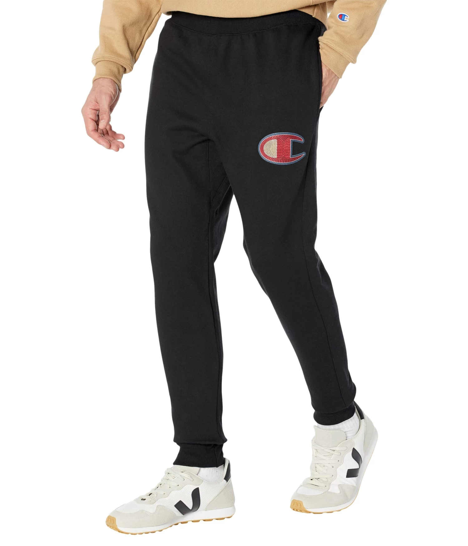 - Kick back in relaxed comfort wearing the Champion LIFE® Reverse Weave® Joggers. These cotton-blend jogger sweatpants are constructed with an elastic waistband with inner drawcord, side seam pockets, back pocket, C patch logo at left upper leg and finished in a tapered leg with ribbed ankle cuffs for a trendy look.