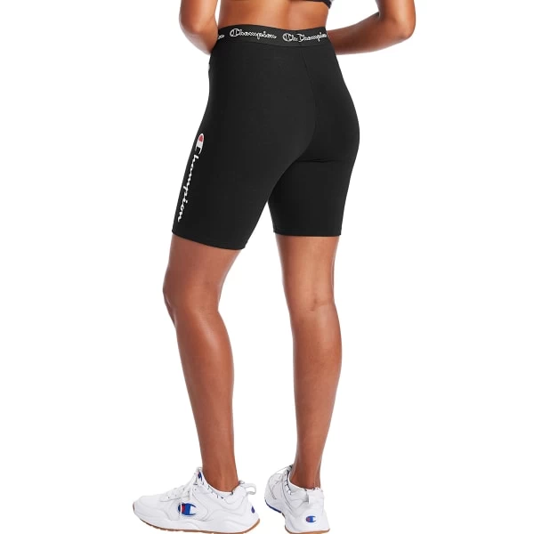 Top-notch comfort is yours with the Authentic Double Dry Logo Bike Shorts. These women’s Champion bike shorts are made from double-dry material, which wicks sweat to keep you cool and dry. The cotton-spandex construction offers a soft, next-to-skin feel with just enough stretch for natural movement, and the flatlock seams offer less chafing. Perfect for smooth, irritation-free comfort on the trails or at the studio.