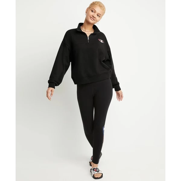 Versatile, lightweight fabric makes for easy styling in any season. Standard fit gives you room to move without restrictions. Soft, wicking French terry fabric manages moisture and odor for a drier wear. Ribbed cuffs, waistband, and mock neck collar lock in warmth, while quarter-zip option ventilates. Champion logo keeps sporty feel front and center.
