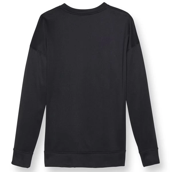 Get a drier wear in our wicking, oversized pullover. Soft and stretchy, pullover is brushed on the interior for added comfort. Wicking fabric manages moisture and odor, so you can go all out and stay cool. Dropped armholes and a fit with more volume ensures easy movement. Thumbholes keep sleeves in place to limit distractions. Classic block lettering keeps the style athletic and versatile. Feel good about your choice knowing it’s made with a percentage of recycled fibers.