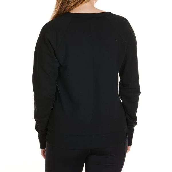 - Has a feminine, relaxed fit and raglan sleeves for free-moving ease.