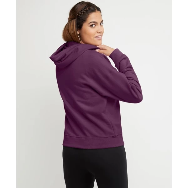 The Champion Powerblend women’s hoodie offers the perfect balance of warmth and style. Soft, lightweight and durable, the Powerblend fleece fabric resists pilling and shrinking for an elegant appearance even after many washes. The loose fit and the ribbed details are characteristics that make this garment ideal for easy layering and better coverage. Combined with your favorite joggers, the logo on the chest amps up your sports style from warm up to cool down so you can look and feel good.