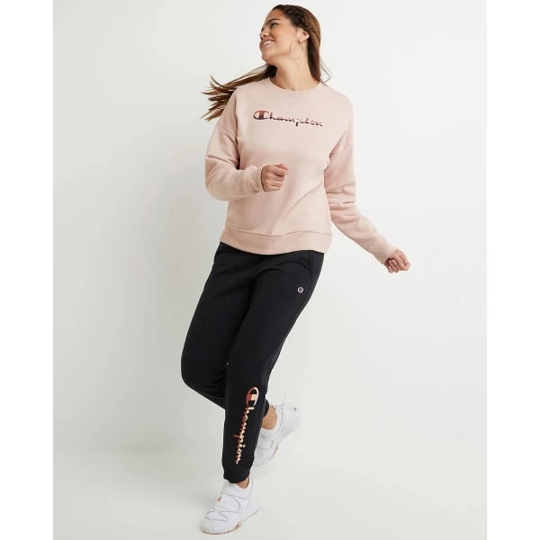 Featuring a relaxed, laid-back fit that pairs perfectly with leggings and shorts, Powerblend Crew reps authentic sport style from gym to laid-back weekend. Soft cotton-polyester blend fleece resists pilling and shrinking and is brushed inside for warmth without the extra weight. Ribbed neck, cuffs and waistband, dropped shoulders for added ease, and iconic C patch logo at left cuff complete the look.